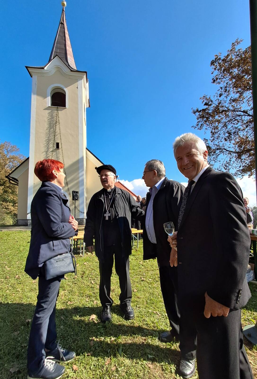 V nedeljo 12. oktobra je slovesnost blagoslova obnovljenega zvonika in ostrešja cerkve sv. Helene v Zemlju vodil upokojeni novomeški škof msgr. Andrej Glavan. V lepem jesenskem vremenu je najprej blagoslovil obnovitvena dela. Sveto mašo smo darovali zunaj pred cerkvijo. Navzoča je bila tudi županja metliške občine Martina Legan Janžekovič in mojster klepar Andrej Šušteršič, ki je lani vodil obnovitvena dela. Zahvalili smo se obema ključarjema Branetu Jurejevčič in Jaku Štrucelj za organizacijo del in nočno varovanje pri cerkvi predstavnikom soseske. Zahvala je bila izrečena tudi županji občine Metlika za prispevek pri obnovi. Zahvala velja tudi gospodinjam, ki so skrbele za prehrano delavcev. Sam menim, da moramo cerkve, ki so jih naši predniki zgradili biti sposobni vsaj obnavljati, da jih ohranimo za prihodnje rodove. Zahvaljujem se tudi za darovanje, ki ste ga namenili za stroške obnove. žpk