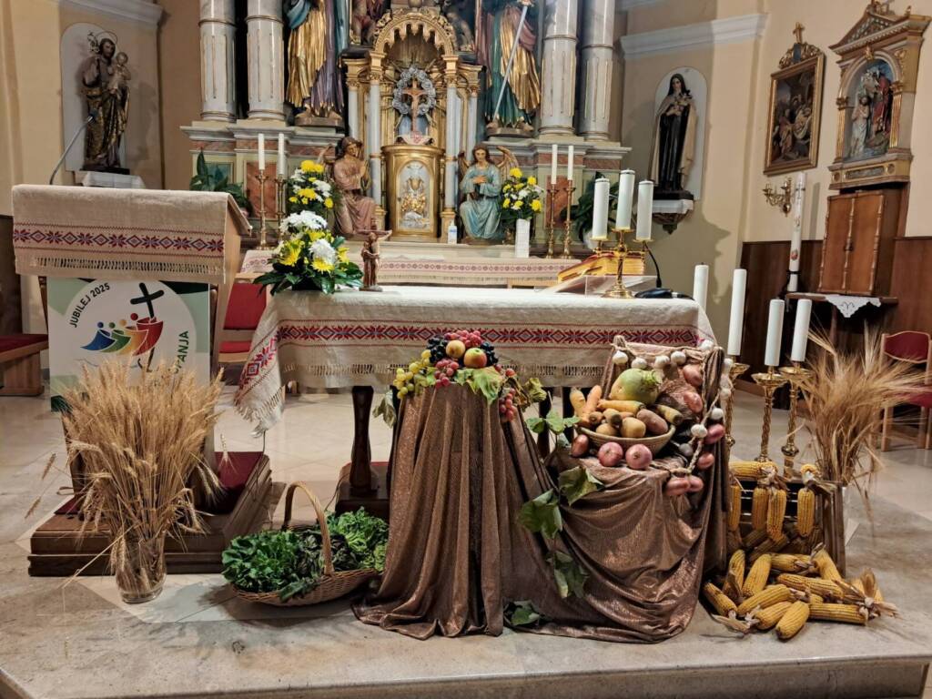 Na zahvalno nedeljo 9. novembra smo izrazili hvaležnost za dobrote, ki smo jih bili deležni po Božji previdnosti. Kot običajno je bil naš oltar okrašen s pridelki in sadovi zemlje. Posebna zahvala pa je bila namenjena Bogu za leta skupnega zakonskega življenja devetih parov jubilantov naše župnije. Eden od parov je slavil 52. obletnico, dva pa zlato poroko. Trije pari so obhajali 40. letnico, eden 30 in en par 10.obletnico. Vsem parom čestitamo in želimo blagoslova in Božjega varstva še naprej.